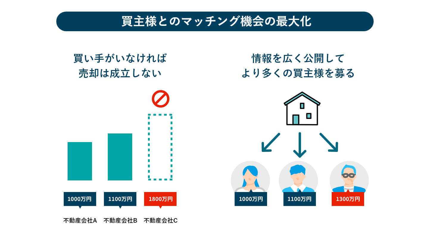 不動産の売却をスムーズに進めるために重要なのは、『どれだけ多くの買主様と出会えるか』ということです。